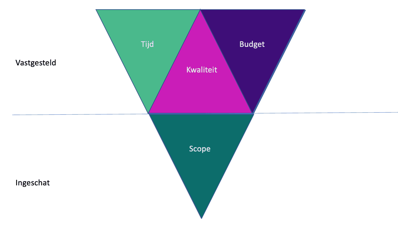 In een traditioneel project wordt de scope vooraf vastgesteld. Vervolgens probeert men in te schatten hoeveel geld en tijd dit gaat kosten. In de praktijk is dit een lastige exercitie.